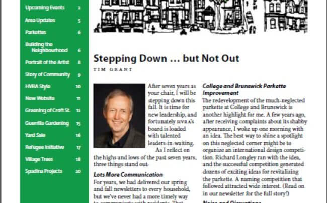 “Though it’s sandwiched between the Annex and a bustling stretch of College, Harbord Village still has a sleepy, tucked-away feel, with its picturesque homes and trees dotting the area.” That’s what a 4-page story in Now Magazine says, headlined “Harbord Village.”