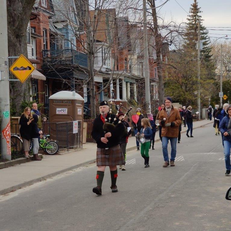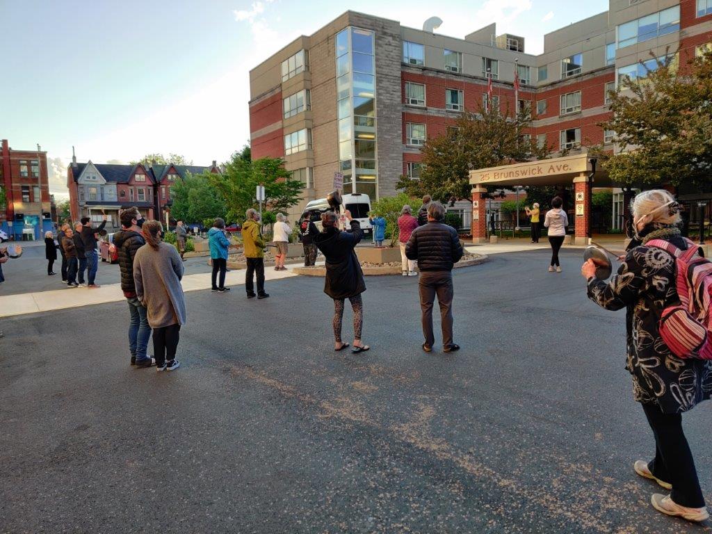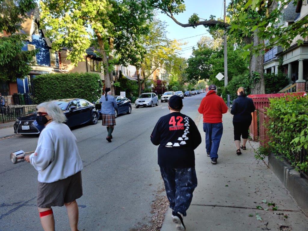 On two occasions, these nightly “serenades” became organized walks down the street to stand in front of the two longterm-care residences at the south end of the block. That brought our thanks right to the staff members whose hard work and devotion are being celebrated.