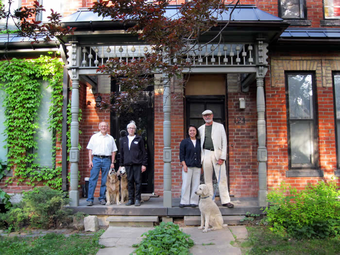 122-124 Robert Street: Over the years, Torfinn (Finn) Hansen has lovingly restored the outside of his house, including slate roof and special gutters. Over the course of four years, Finn and his neighbour Hal Greer designed a new porch, which includes their design of custom wood turned in Kemptville.